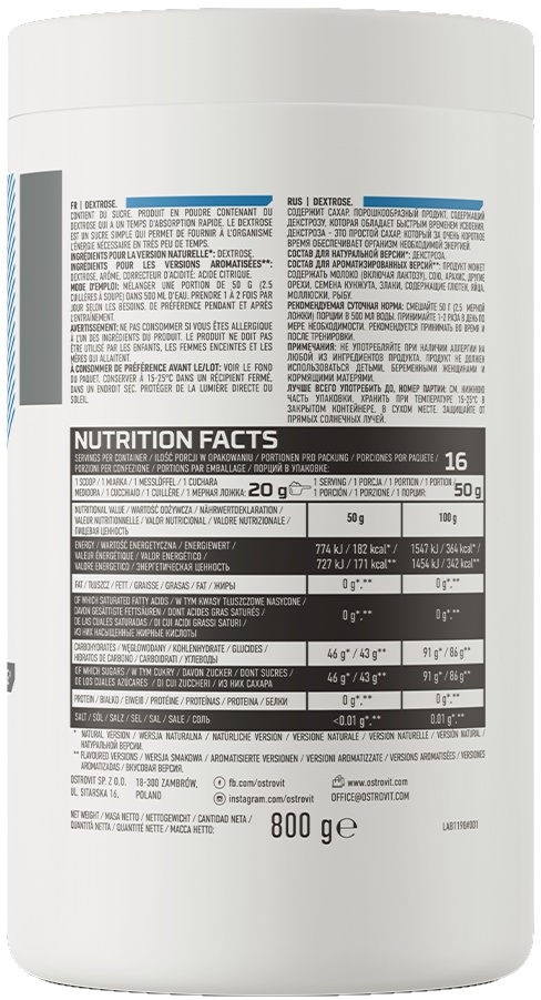Energizant Ostrovit Dextrose 800g Orange