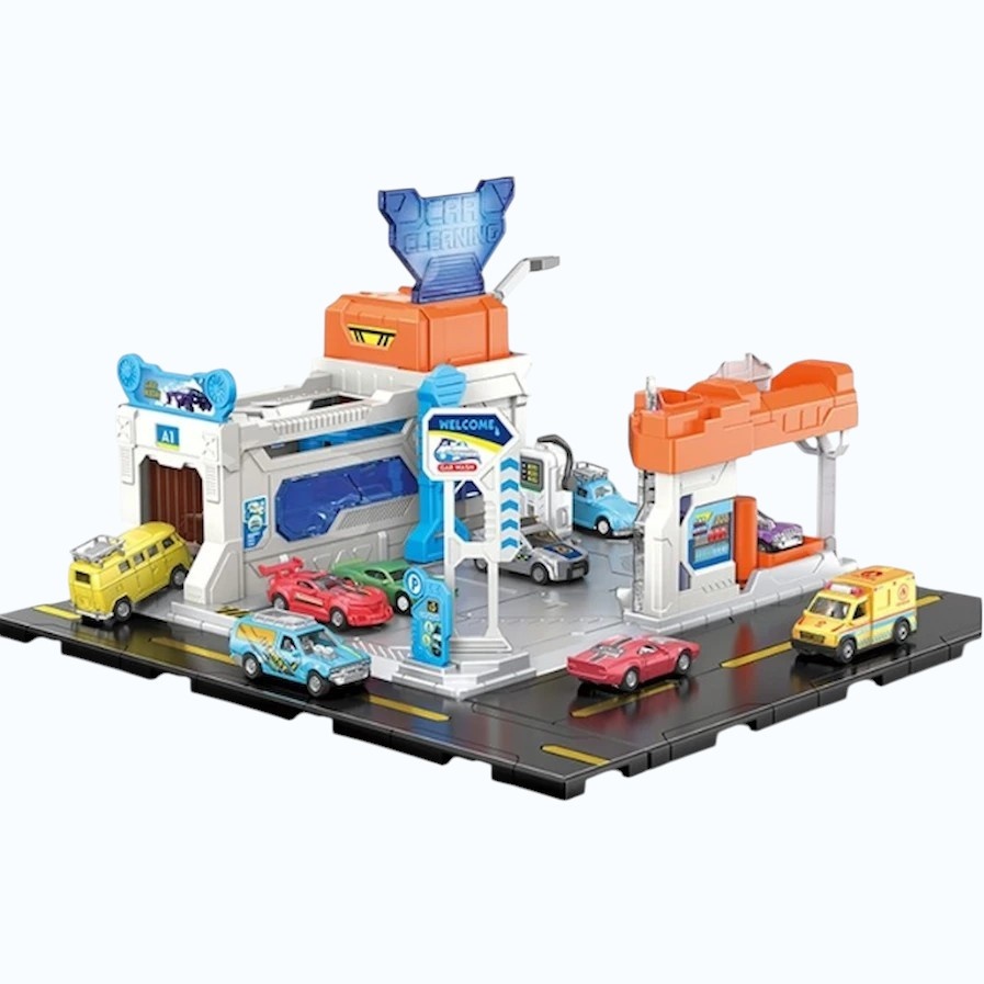Acest set captivant permite copiilor să se simtă proprietari de service auto! Setul are efecte luminoase și sonore, iar camionul se poate conecta la alte piese pentru a extinde jocul. Include 2 mașinuțe din metal.