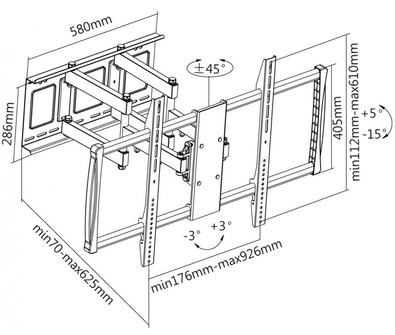 Standard VESA200x200, 300x300, 400x200, 400x400, 600x400, 800x400, 800x600, 900x600 mm