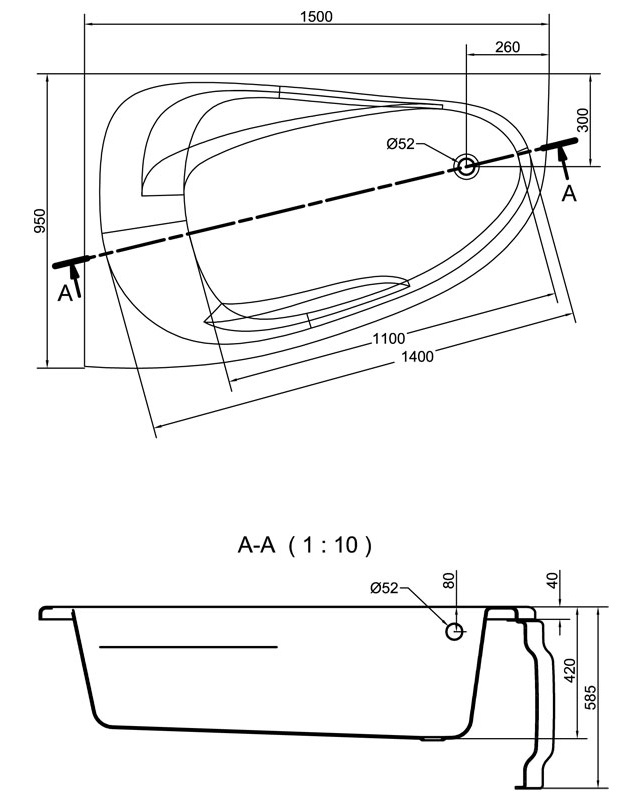 Cadă de baie Cersanit Joanna New 150х95 R