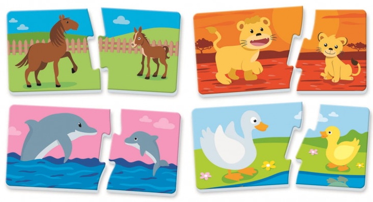 The Mums & Babies este o jucărie educativă simplă, distractivă, creată special pentru copiii foarte mici. Cardurile mari sunt ușor de ținut, sigure și rezistente la uzură și ușor de manevrat pentru copii. Ilustrațiile colorate îi învață pe copii despre animalele și puii lor de animale. Jucându-se, copiii își dezvoltă capacitatea manuală, gândirea logică și abilitățile de observare.