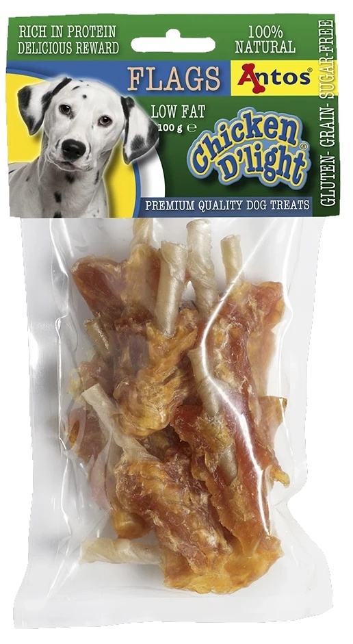 Snackuri pentru câini Antos Chicken D'light Flags 100g (A20162)