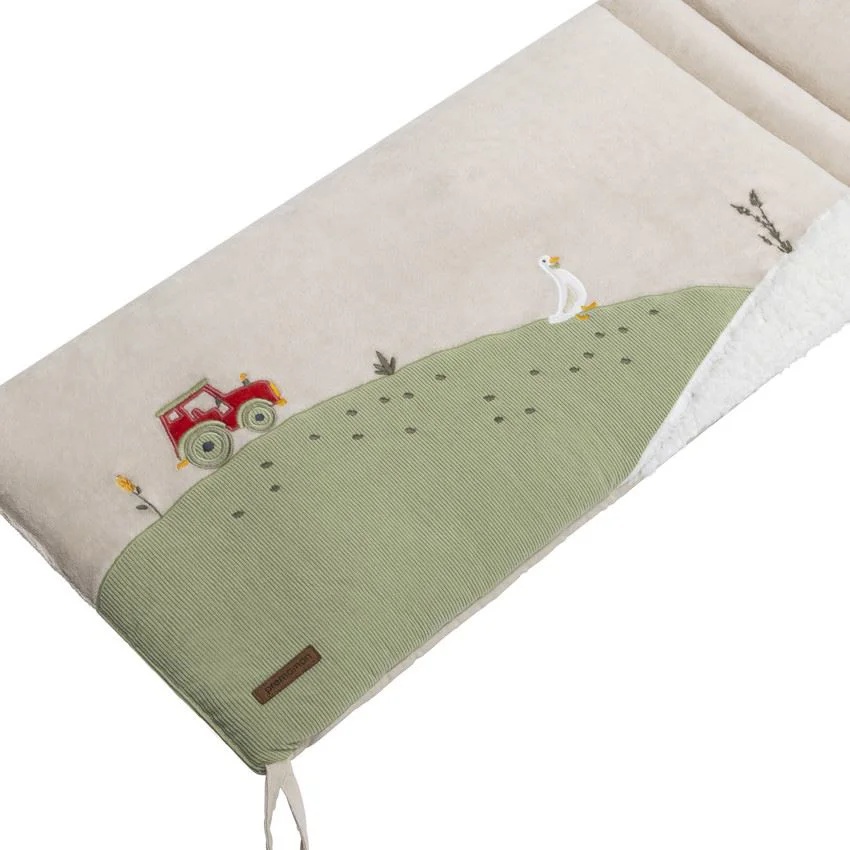Oferă-i bebelușului tău nopți liniștite și sigure cu protectia letarala de pătuț "Viata la Ferma". Realizata din velur moale, cu 3 panouri brodate cu motive din viața la fermă, această protecție adaugă un strop de farmec rustic camerei copilului.