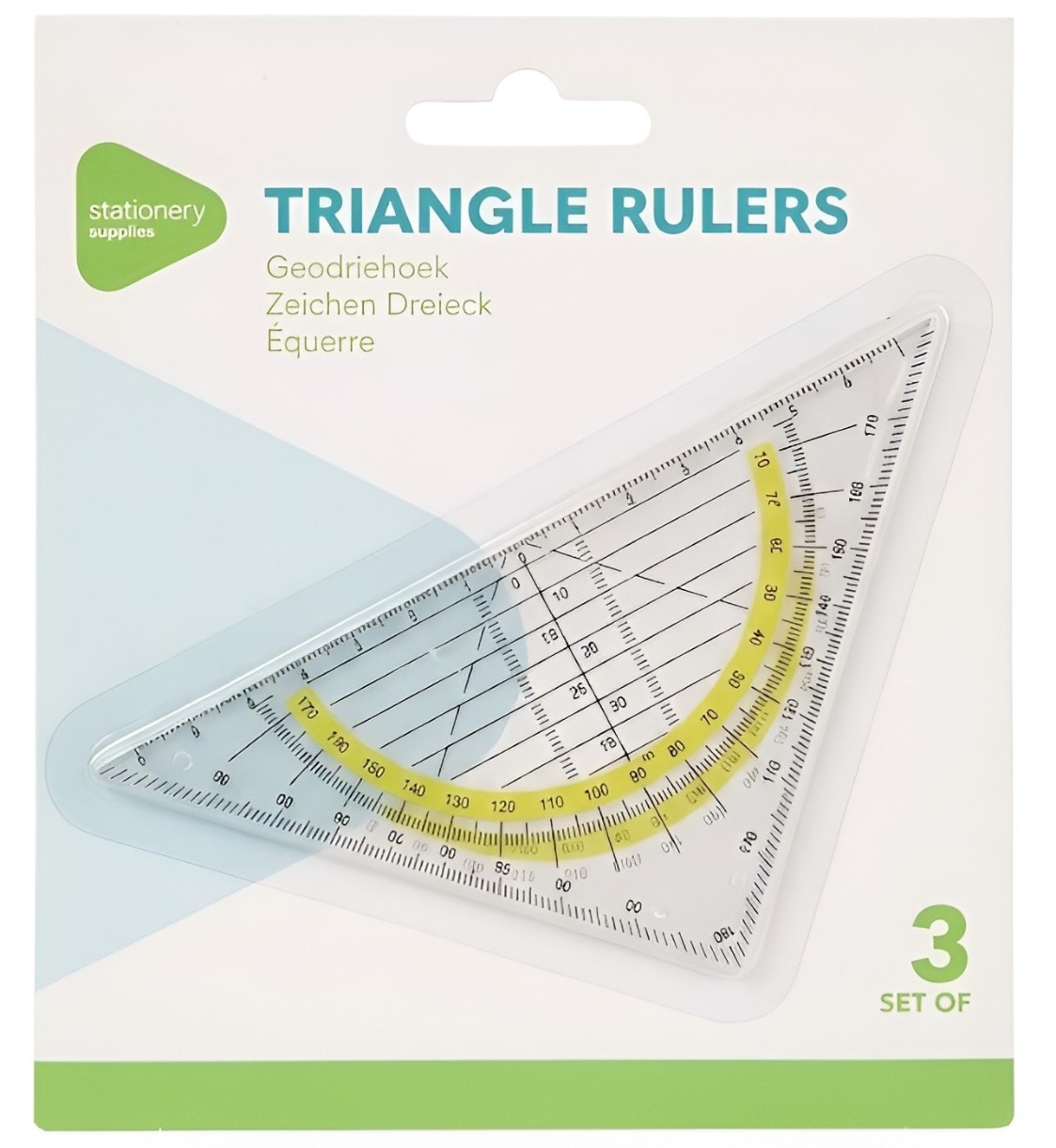 Set geometric: 3 triunghiuri geometrice cu o riglă și un raportor.