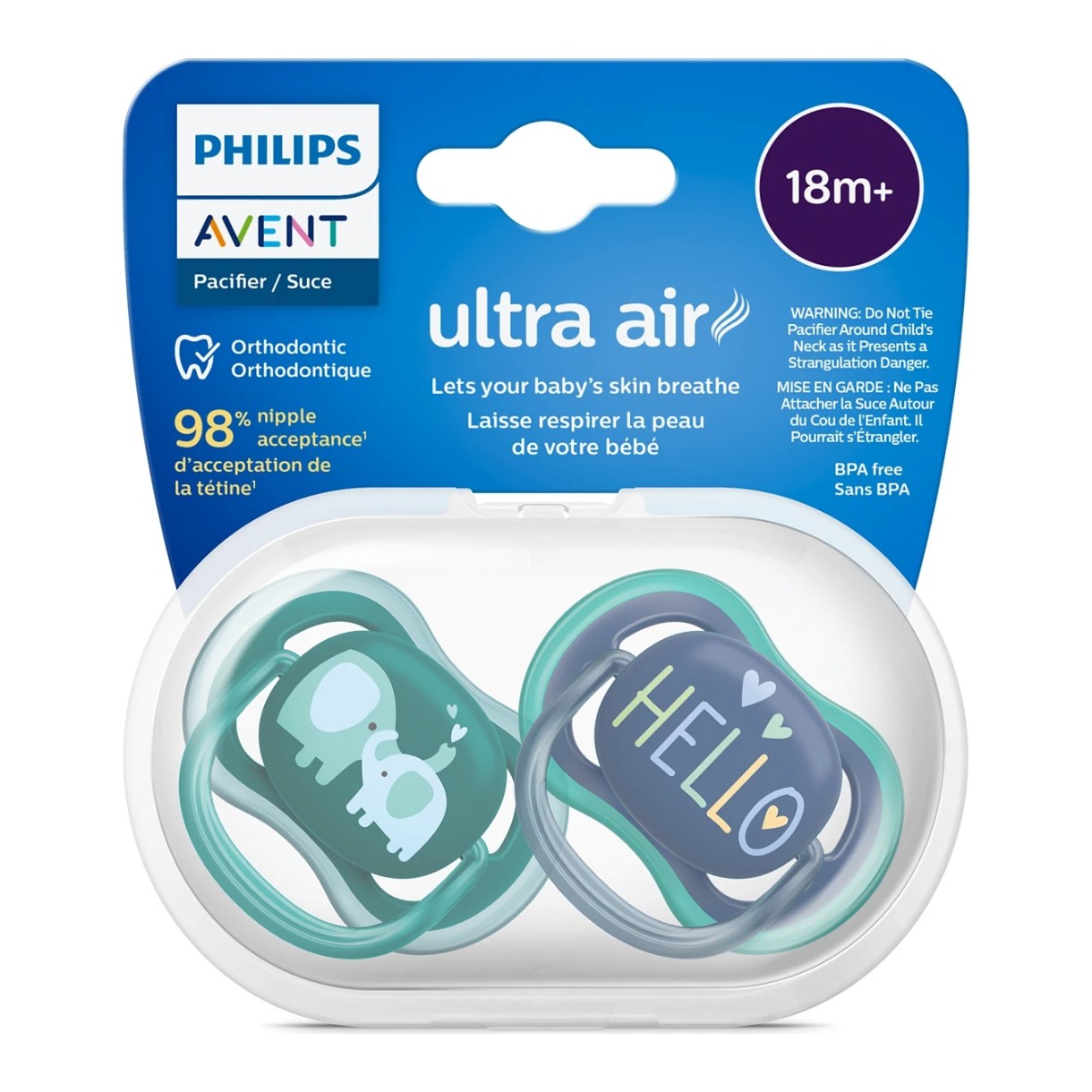 Suzeta din silicon Philips Avent Ultra Air este o suzetă ortodontică care are grijă de pielea delicată a bebelușului. Scutul cu margini rotunjite și 4 orificii mari permite o circulație excelentă a aerului, prevenind iritațiile cauzate de umiditate pe piele.