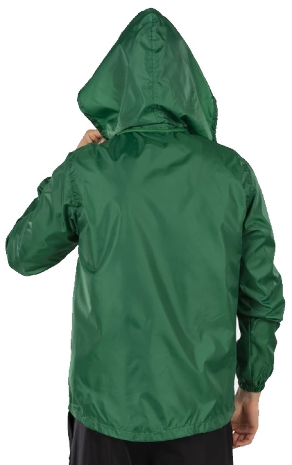 Jacheta de ploaie deschisă cu fermoar este dotată și cu buzunare laterale, manșete elastice ajustate și glugă autoreglabilă. Stratul interior este realizat din plasă fină (micromesh), care asigură o ventilație și o respirabilitate excelente, contribuind astfel la menținerea temperaturii optime a corpului.