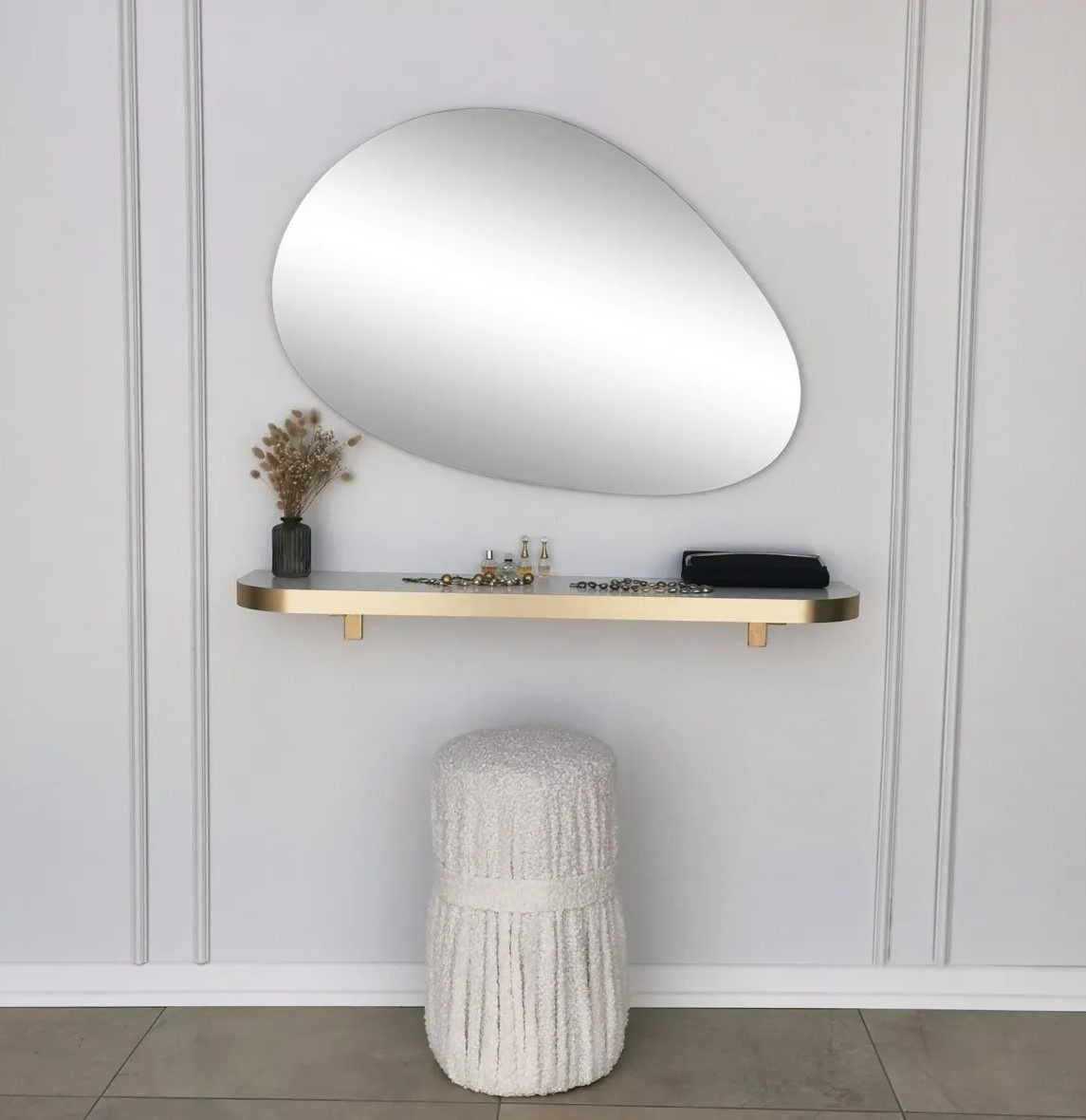 Cu dimensiunile de 90 cm lățime și 60 cm înălțime, oglinda este perfectă pentru a deveni un element de impact fără a încărca spațiul. Designul elegant și minimalist se potrivește în orice stil de interior — modern, original, hotelier sau scandinav. Se fixează ușor pe perete, creând un punct focal care reflectă gustul și personalitatea.