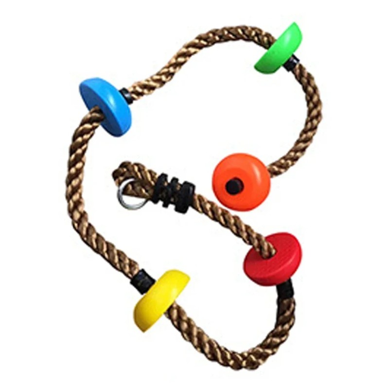 Această frânghie de 200 cm este ideală ca treaptă pentru cățăratul în copaci. O poți agăța și lângă un leagăn pentru a antrena forța corporală și agilitatea. Frânghia are niște suporturi pentru picioare care facilitează cățăratul și o poți atașa cu ușurință la inelul metalic.