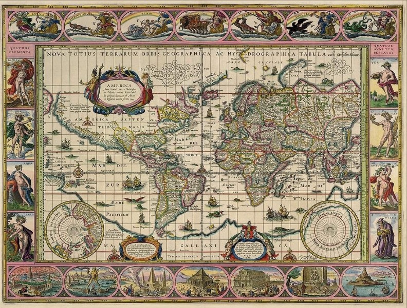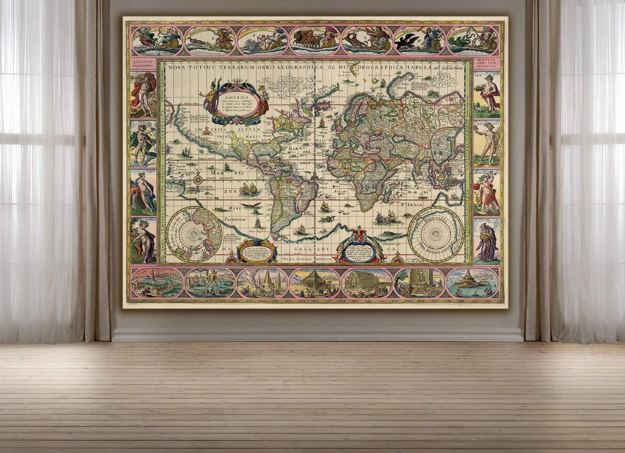 Descoperă epoca marilor explorări geografice cu această hartă a lumii, imprimată pe pânză într-un stil vintage spectaculos. Detaliile fine, culorile bogate și elementele artistice fac din acest tablou o adevărată capodoperă pentru iubitorii de istorie și decor clasic. Harta este decorată cu scene mitologice, figuri ale zeilor antici și simboluri ale celor patru elemente, oferindu-i un farmec aparte. Un element decorativ perfect pentru birouri, sufragerii, cabinete sau cafenele tematice. Printul de înaltă calitate pe pânză asigură claritatea și durabilitatea imaginii. O alegere excelentă pentru cei care apreciază estetica trecutului și sunt inspirați de călătorii!