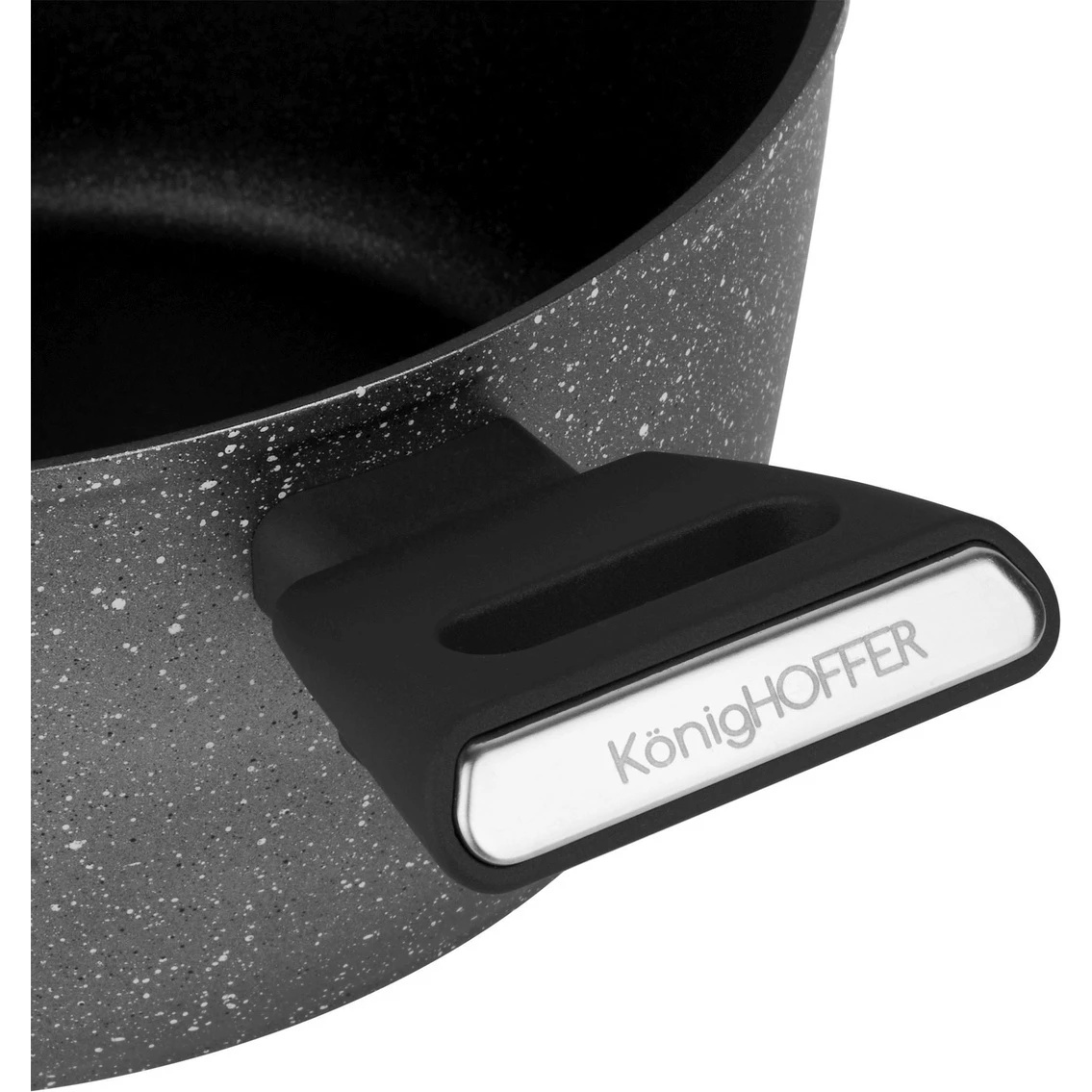 Corpul din aluminiu al oalei Konighoffer Grigio asigură, de asemenea, durabilitate pe termen lung. A fost forjat la temperatură ridicată. Acest lucru îl face foarte durabil, perfect echilibrat și, în același timp, ușor și manevrabil, având, de asemenea, pereți mai groși decât oalele standard.