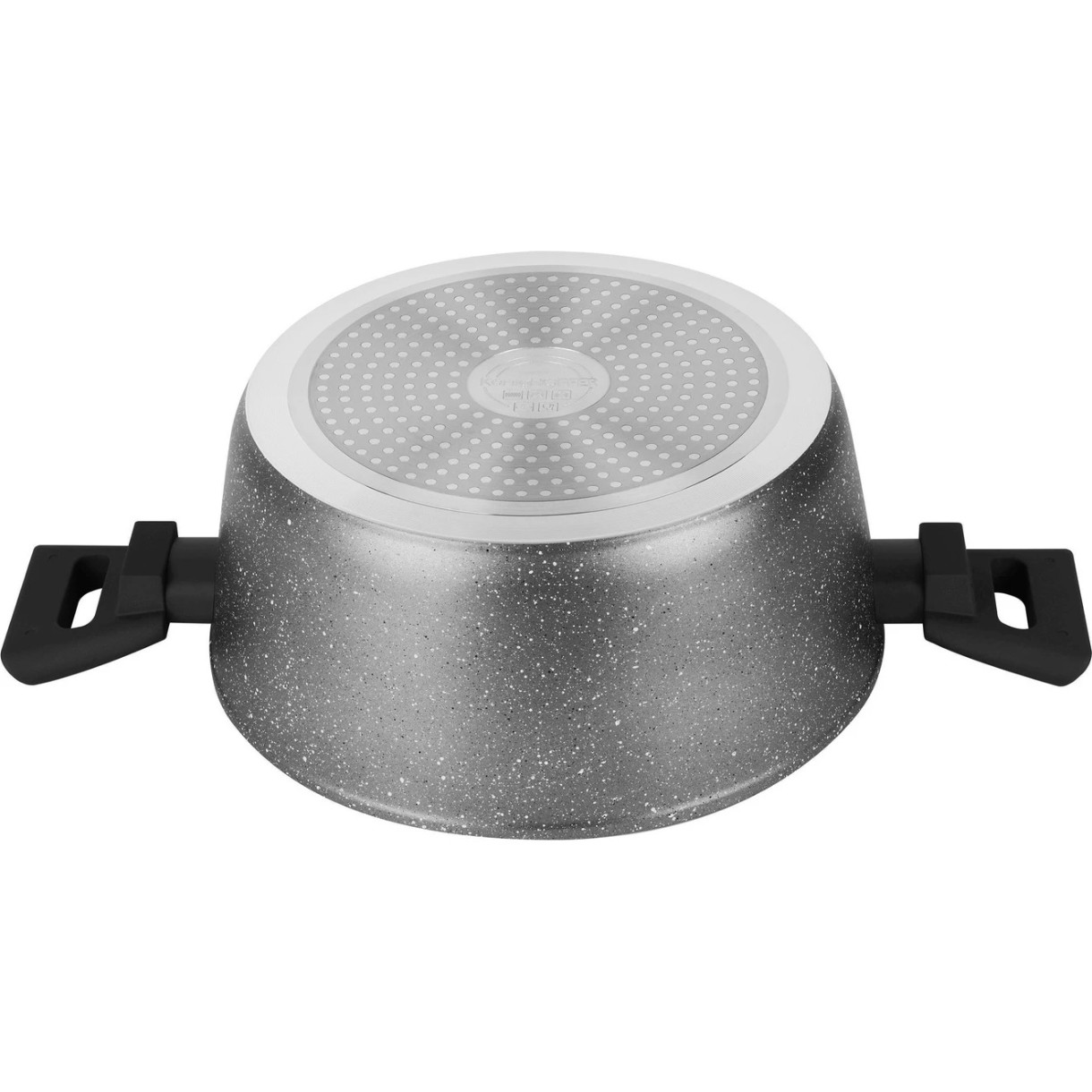 Oala Grigio are un diametru de 24 cm. Interiorul său este acoperit cu un strat dublu de marmură antiaderentă care poate rezista la până la 50.000 de cicluri de abraziune (rezultatul standard pentru oalele antiaderente clasice este de 2.000!). Acest lucru a fost realizat fără adăugarea de substanțe nocive, inclusiv PFOA. Prin urmare, designul său este complet sigur pentru sănătate și mediu.