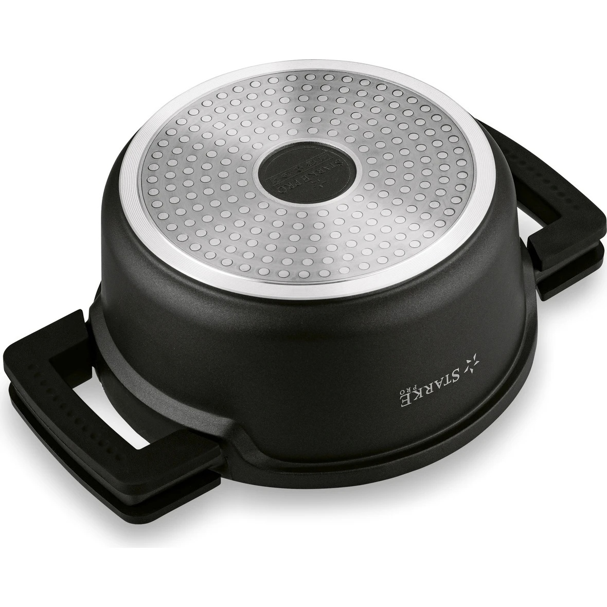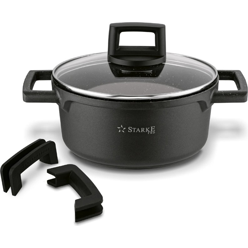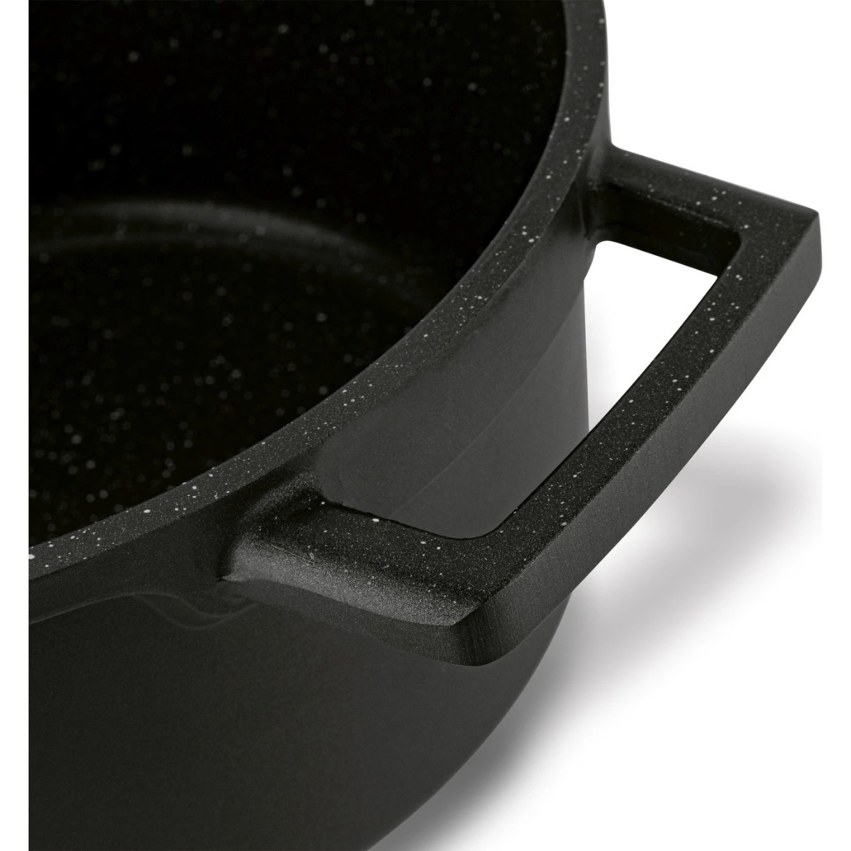 Această oală foarte robustă este fabricată dintr-o turnare omogenă din aluminiu turnat sub presiune. Este grea, solidă, bine echilibrată și foarte practică. Oala, care imită un model de marmură, are chiar și două mânere mari pentru a fi ușor de transportat.