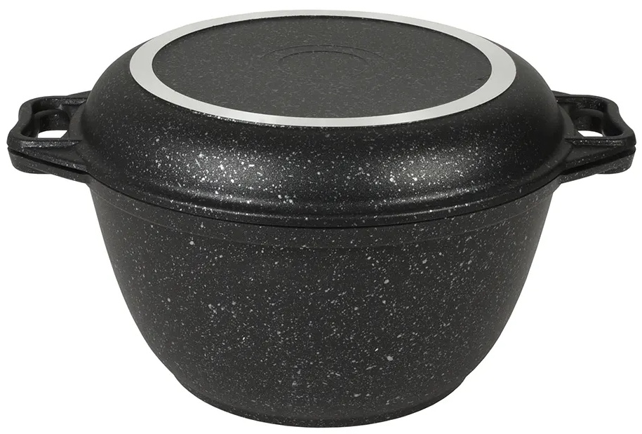 Ceaunul Kukmara cu capac-tigaie de 3 litri, în nuanța marmură închisă, este o piesă de veselă elegantă și multifuncțională, perfectă pentru cei care apreciază confortul, durabilitatea și designul rafinat. Colecția „Marmură” se remarcă prin tonuri calme și un aspect modern, aducând o notă de eleganță în orice bucătărie. Ceaunul este ideal pentru fierbere, înăbușire, coacere sau gătire lentă, menținând savoarea naturală și suculența preparatelor datorită proprietăților excelente de reținere și distribuire a căldurii ale aluminiului turnat. Mânerele turnate integral permit utilizarea vasului și în cuptor.