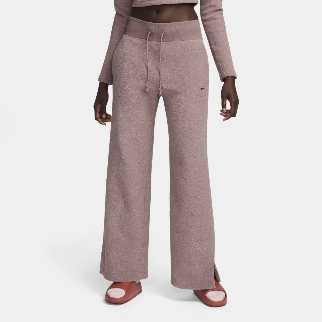 Pantaloni spotivi de dame Nike W Nsw Phnx Plsh Hr Pant Wide Smokey Mauve/Black, s.XL