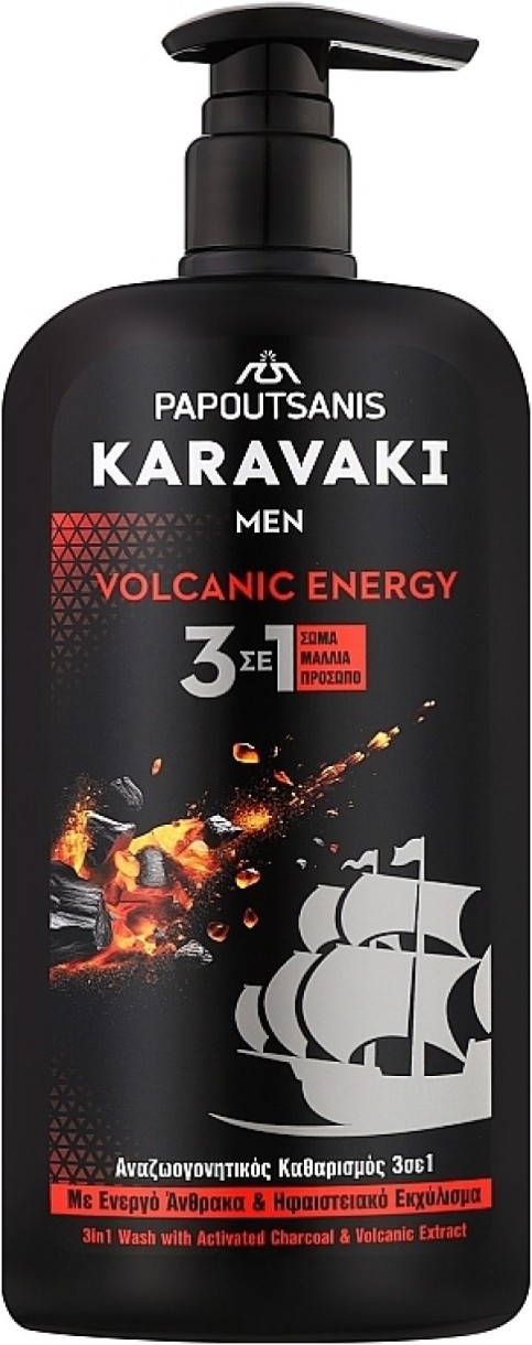 Gel de duș Papoutsanis Karavaki Men 3in1 Volcanic Energy 550ml (6790012)