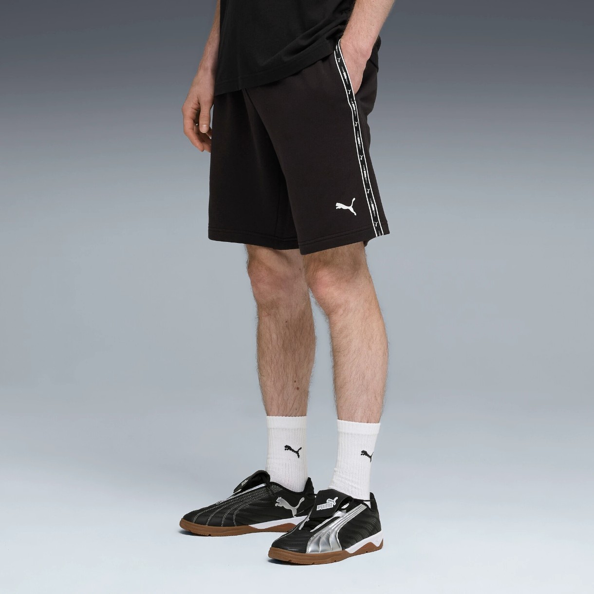 Tricotul French Terry este moale și plăcut la purtare. Talie elastică cu cordon interior permite ajustarea ușoară a potrivirii. Banda cu logo-uri PUMA repetate pe laterale adaugă stilul caracteristic brandului, iar logo-ul PUMA Cat imprimat pe partea stângă completează designul.