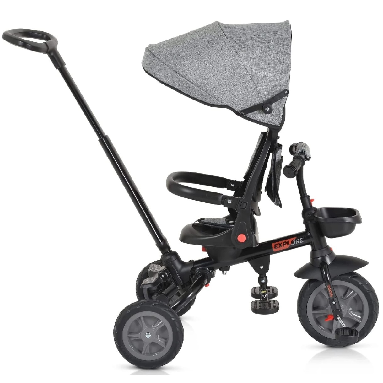 Tricicleta Explore este concepută cu confortul și siguranța în minte, pentru copiii cu vârsta între 12 și 60 de luni și o greutate de până la 25 kg. Iată principalele sale caracteristici: