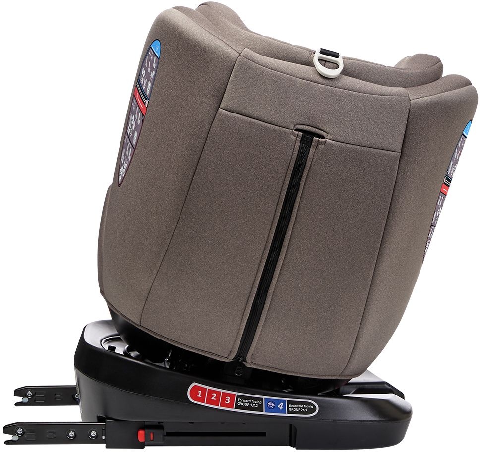 - Funcția de rotație la 360° adaugă un plus de confort, permițând rotirea ușoară a scaunului auto către ușă pentru așezarea și fixarea copilului fără efort.