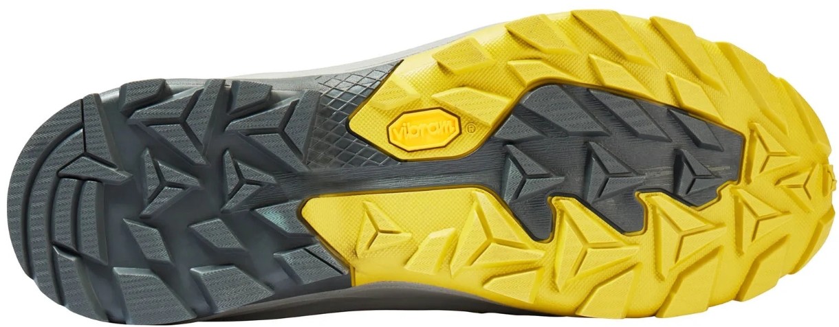Talpa durabilă VIBRAM cu profil agresiv garantează o aderență sigură pe orice suprafață – de la pietre umede și sol afânat până la poteci montane. Zonele întărite din vârf și călcâi protejează piciorul împotriva loviturilor, iar sistemul practic de șireturi cu inele în formă de D distribuie uniform tensiunea, fixând piciorul în siguranță.
