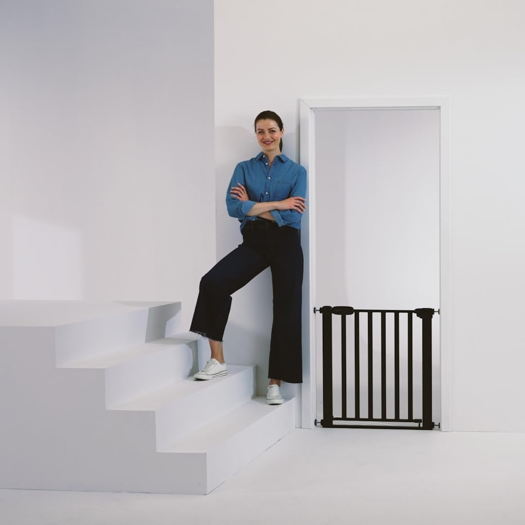 Această poartă de scară practică este de la Kinderkraft. Poarta de scară Lock&Go este potrivită pentru deschideri de la 75 la 103 cm. O puteți folosi pentru uși și în capul sau josul scărilor. Poarta de scară are o treaptă plată, o bară inferioară joasă pentru a preveni împiedicarea. Poarta de scară se închide automat atunci când este deschisă la un unghi mai mic de 90 de grade și nu se va închide dacă este deschisă la un unghi mai mare de 90 de grade. Poarta de scară dispune, de asemenea, de un sistem de securitate dublă pe care îl puteți deschide cu ușurință cu o singură mână. Această poartă de scară este ușor de instalat fără unelte.