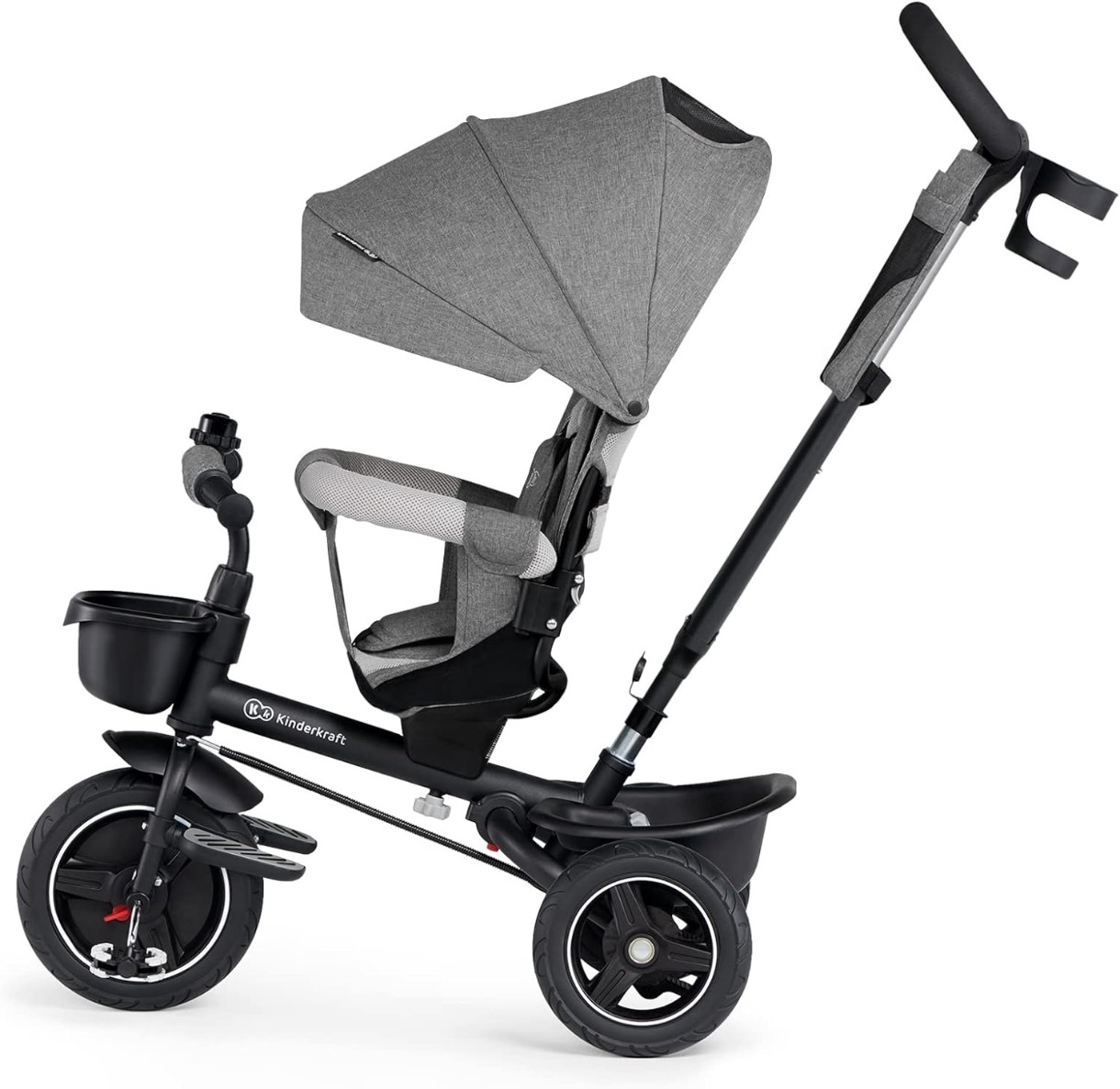 SPINSTEP este o alternativă excelentă la cărucior. Este echipată cu un scaun moale pivotant la 360°, care poate fi orientat cu fața sau cu spatele către părinte. Tricicleta are o copertină mare, pliabilă și impermeabilă, realizată dintr-un material cu filtru UPF50+, ce protejează eficient împotriva razelor solare.