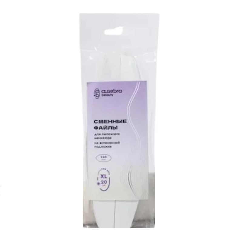 Rezervele pentru pilă de manichiură Algebra For Skin XL P240 Boat (20 buc.) sunt alegerea ideală pentru prelucrarea delicată și pregătirea finală a unghiilor. Sunt destinate utilizării împreună cu baza pilei, oferind igienă și confort în lucru.