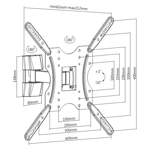Standard VESA100x100, 200x100, 200x200, 300x200, 300x300, 400x200, 400x400 mm