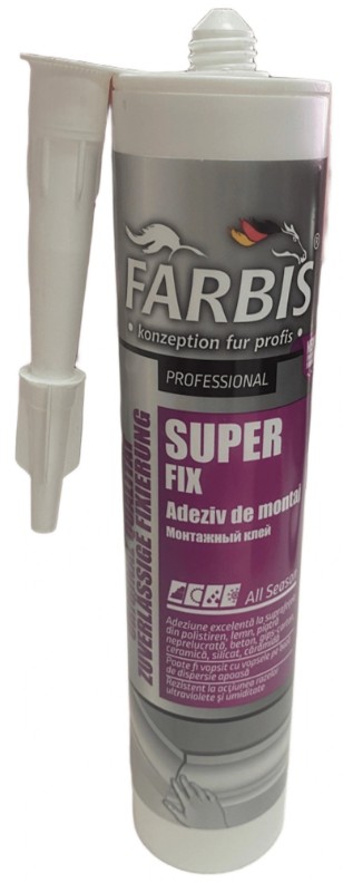 Adezivul de montaj pentru toate anotimpurile Super Fix Farbis este un adeziv de montaj pe bază de dispersie poliacrilică pentru lipire instantanee, utilizat în construcția și renovarea clădirilor rezidențiale și industriale.