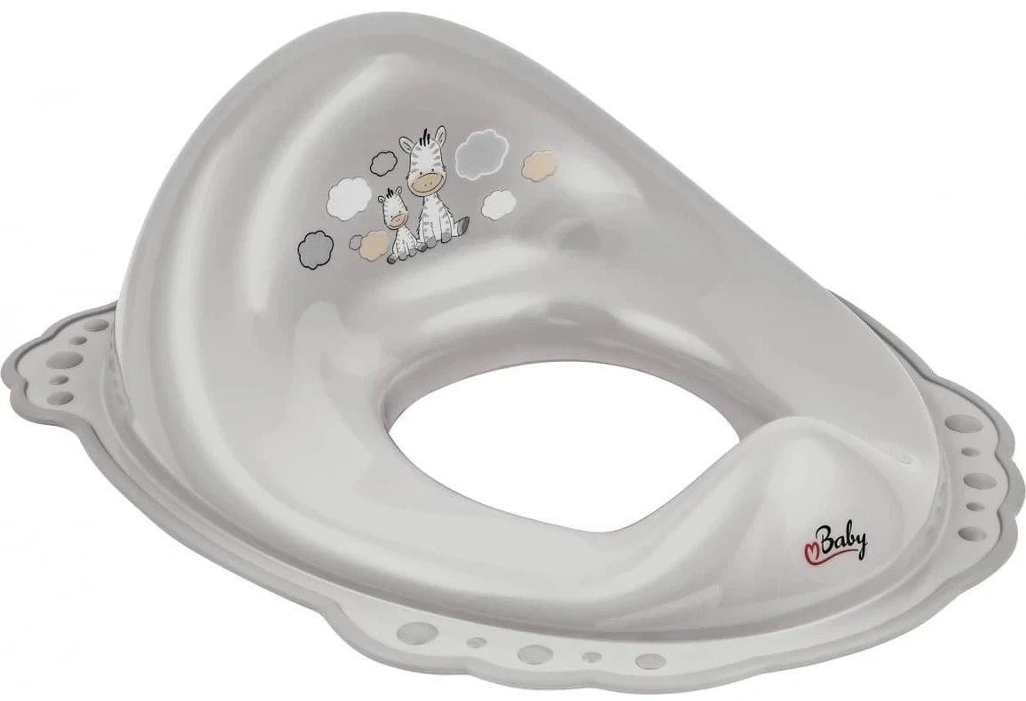 Designul vesel cu model „Zebra” atrage atenția copilului și transformă procesul de obișnuire cu toaleta într-o experiență plăcută. Scaunul se montează ușor pe o toaletă standard și este simplu de curățat.