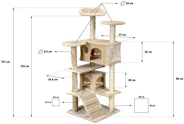 Un ansamblu de zgâriere atractiv și interesant care poate satisface nevoile naturale ale fiecărei pisici. Protejați-vă mobilierul de daune. Fiecare pisică, ascuțindu-și ghearele, își marchează teritoriul. De regulă, acest lucru este afișat întotdeauna pe mobilierul nostru, provocând daune permanente. O decizie bună este să achiziționați un articol care este mai potrivit pentru pisică. Un înlocuitor ideal ar fi achiziționarea acestui suport de zgâriere. Acest ansamblu de zgâriere este pliabil, stabil, realizat din material de înaltă calitate.