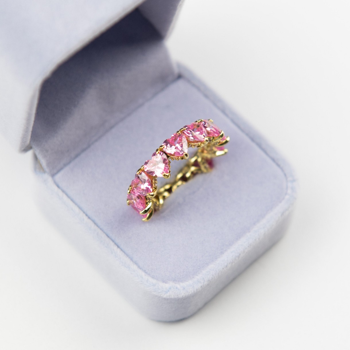 Inelul este decorat cu o multitudine de zirconii albe imaculate. Pietrele strălucesc intens și sclipesc în lumina soarelui. Poate fi purtat zilnic, oferind bucuria unui aspect festiv și elegant.