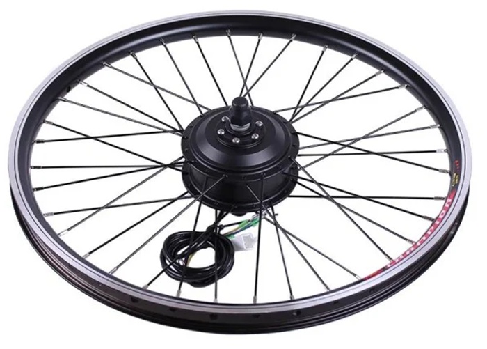 Roata asamblată și spițată, echipată cu motor de 36V 1000W, se montează pe axa față sau spate a bicicletei (în funcție de set). Janta solidă, cu spițe întărite, protejează motorul de deformare, este rezistentă și durabilă la sarcini. Rularea lină și ușurința deplasării, împreună cu modul de asistență, economisesc energia bateriei și nu vor transforma „carul în dovleac” pe distanțe lungi!