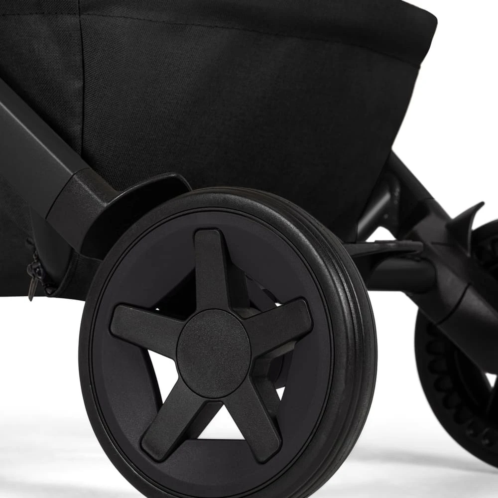 Joolz Aer2 alunecă lin înainte, fără a fi nevoie să vă efortați - controlați căruciorul chiar și cu o singură mână. Înălțimea optimă a mânerului căruciorului este de 105 cm - va fi convenabil atât pentru mămicile, cât și pentru tații înalți. Amortizarea șocurilor este pe toate cele 4 roți. Axul dintre roțile din spate este ridicat mai aproape de coș, ceea ce mărește spațiul pentru treaptă și reduce probabilitatea de a apăsa accidental frâna. Punerea căruciorului pe frână este destul de simplă datorită cheii mari care nu pătează încălțămintea.