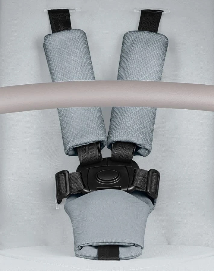 - Sistemul de centuri în 5 puncte, cu pernuțe moi pentru umeri și protecții pentru catarame, asigură o potrivire confortabilă chiar și în timpul ieșirilor mai lungi.