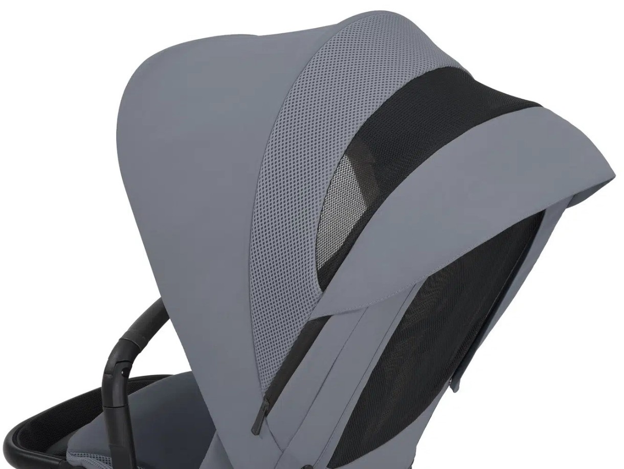- MIA are o copertină cu extensie prin fermoar, vizieră de soare și deschideri din plasă pe spătar pentru umbră suplimentară, ventilație și un mediu mai răcoros în zilele calde.