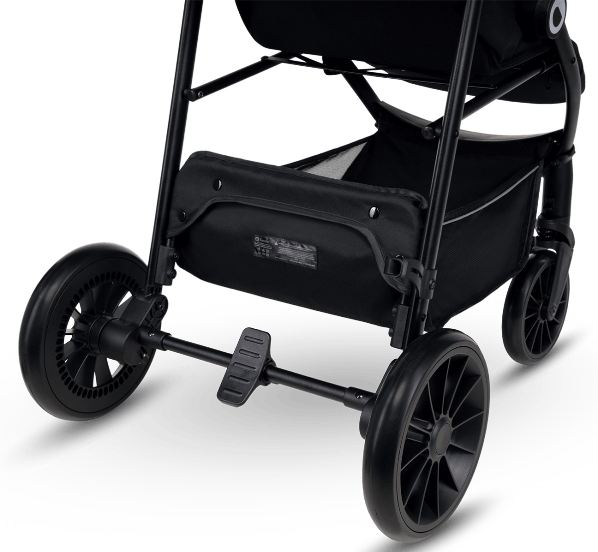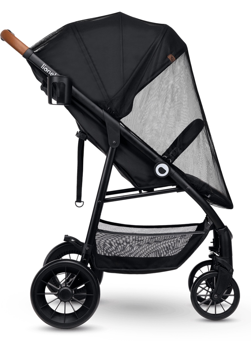 Roțile din față și din spate ale lui Lionelo Zoey sunt echipate cu amortizoare care minimizează eficient senzația de vibrație. Manevrabilitate ridicată și aderență bună a căruciorului sunt asigurate de roți mari rezistente la uzura din spumă poliuretanică EVA. Produsul este echipat cu o frana centrala, actionata de picior, si un blocaj suplimentar al directiei pentru conducerea in linie dreapta.