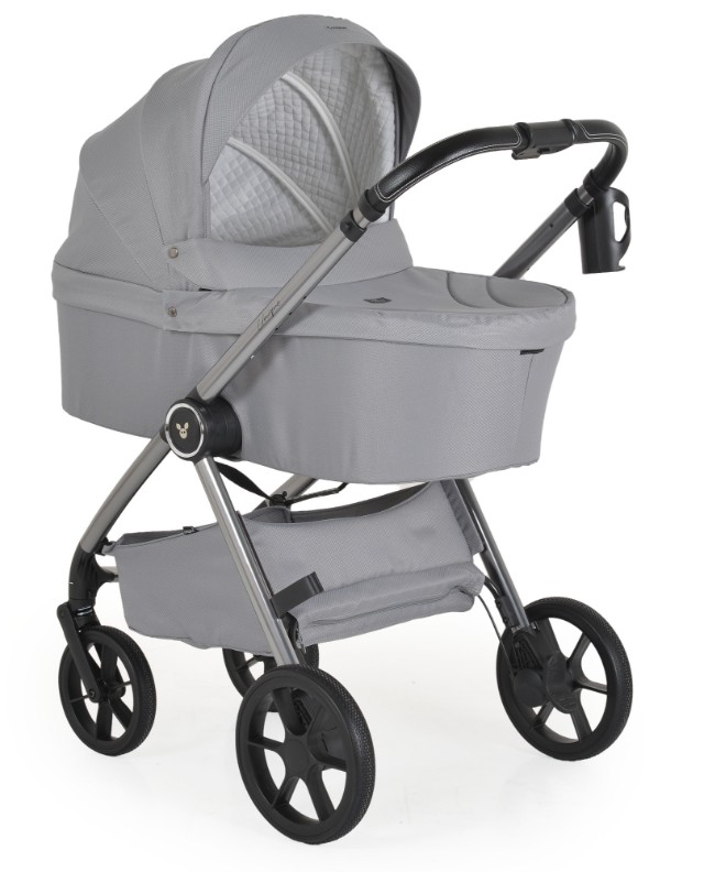 - Amortizoare pe toate roțile și detașare facilă printr-un buton.