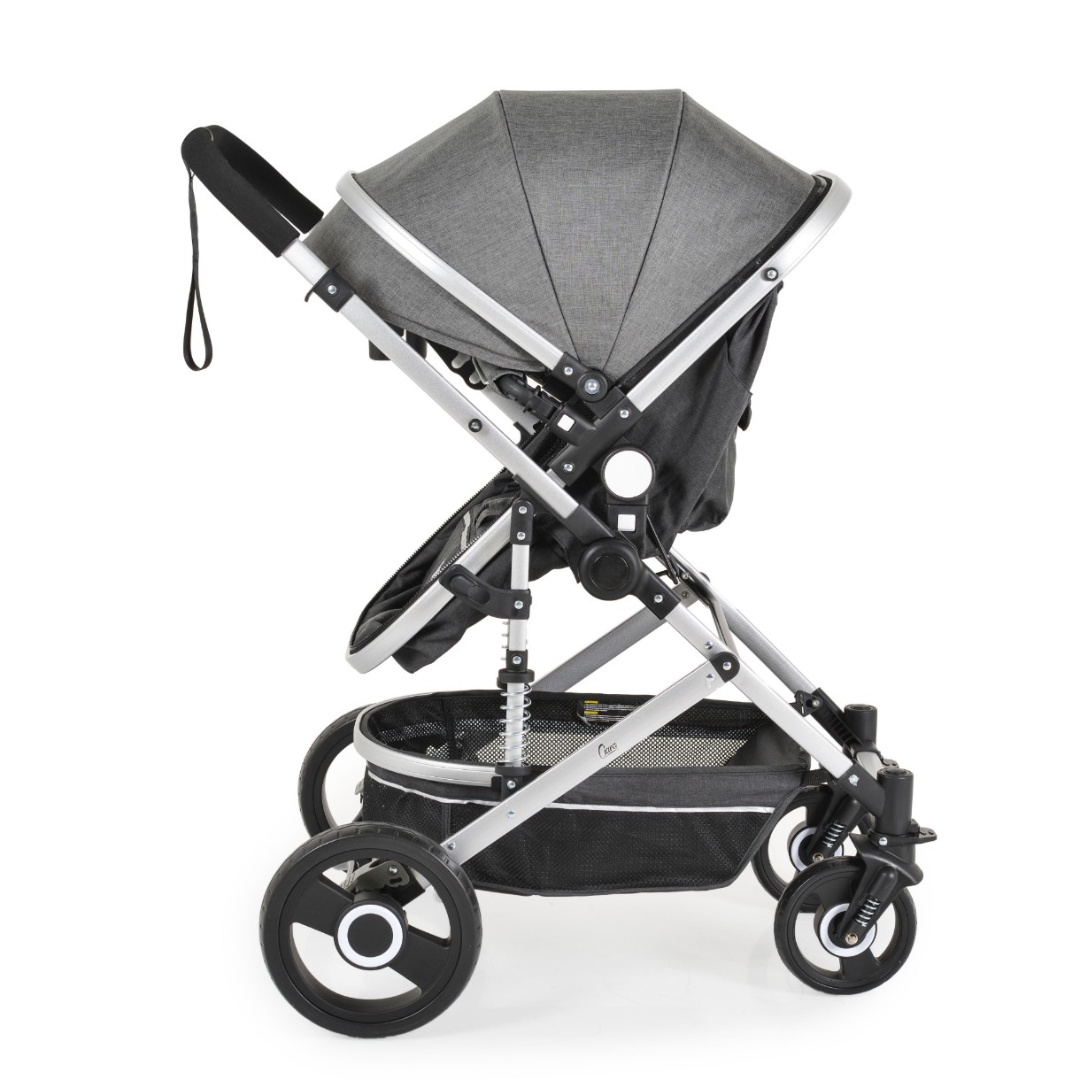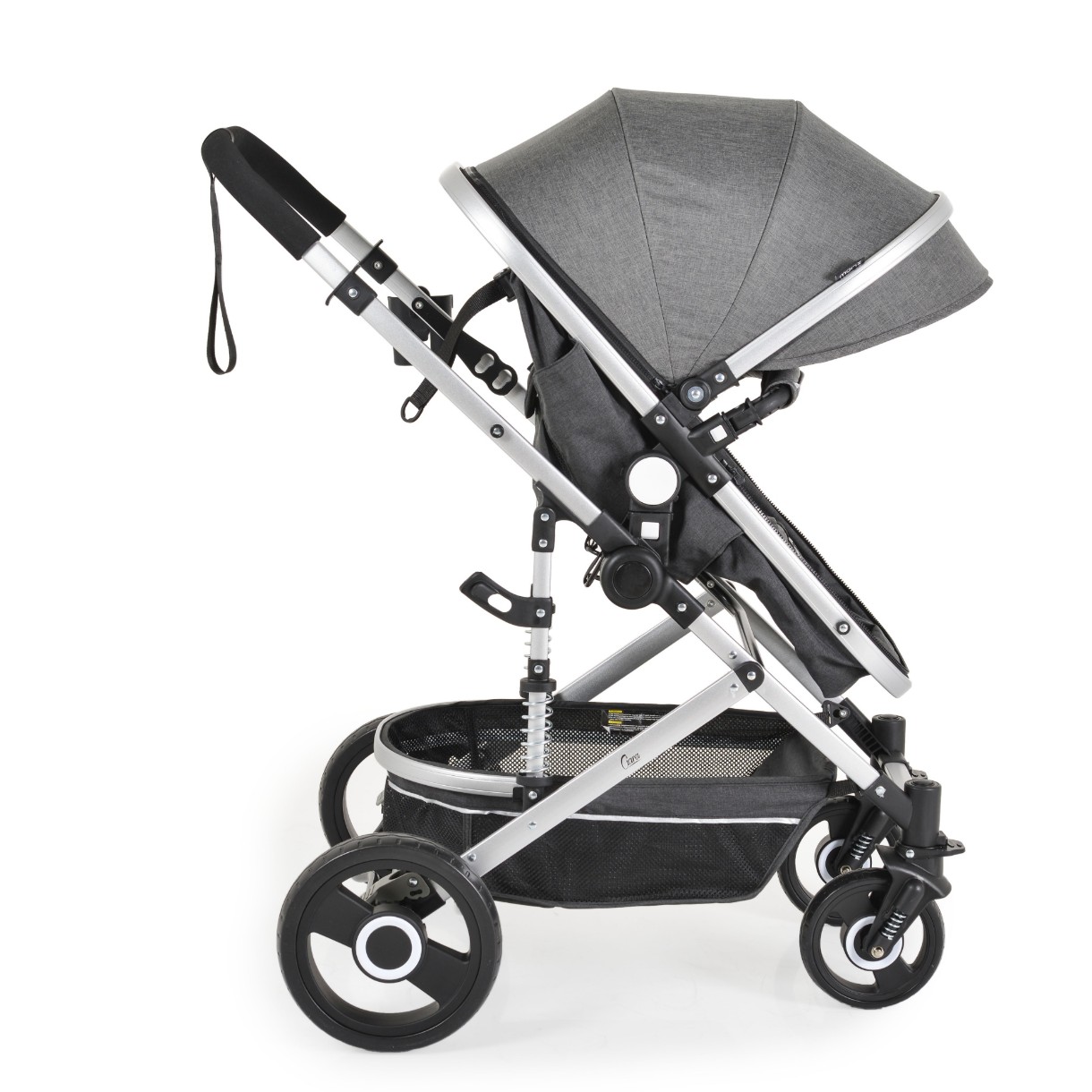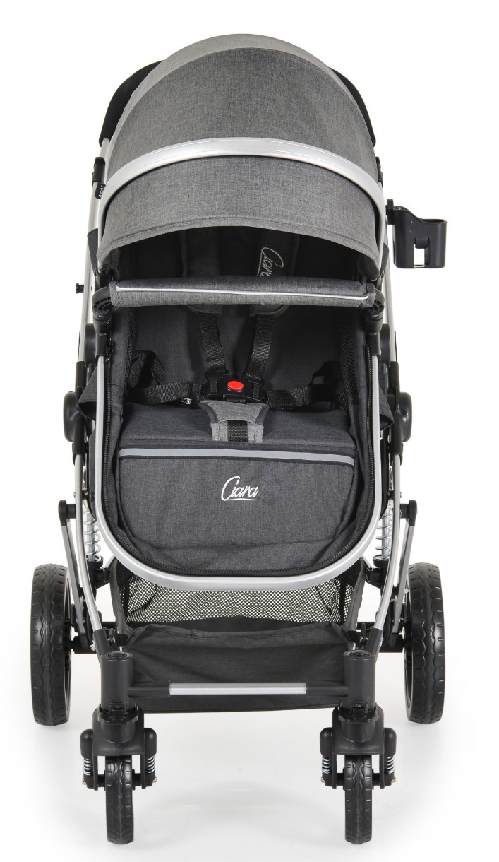 Caruciorul pentru bebelusi este cu cadru din aluminiu si suspensii spate, fata si mijlocie.
