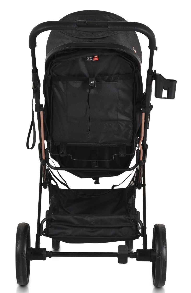 Centură de siguranță în 5 puncte cu perne moi. Capota volumetrica detasabila din 3 sectiuni. Fereastra plasa pentru monitorizarea copiilor si circulatia aerului.