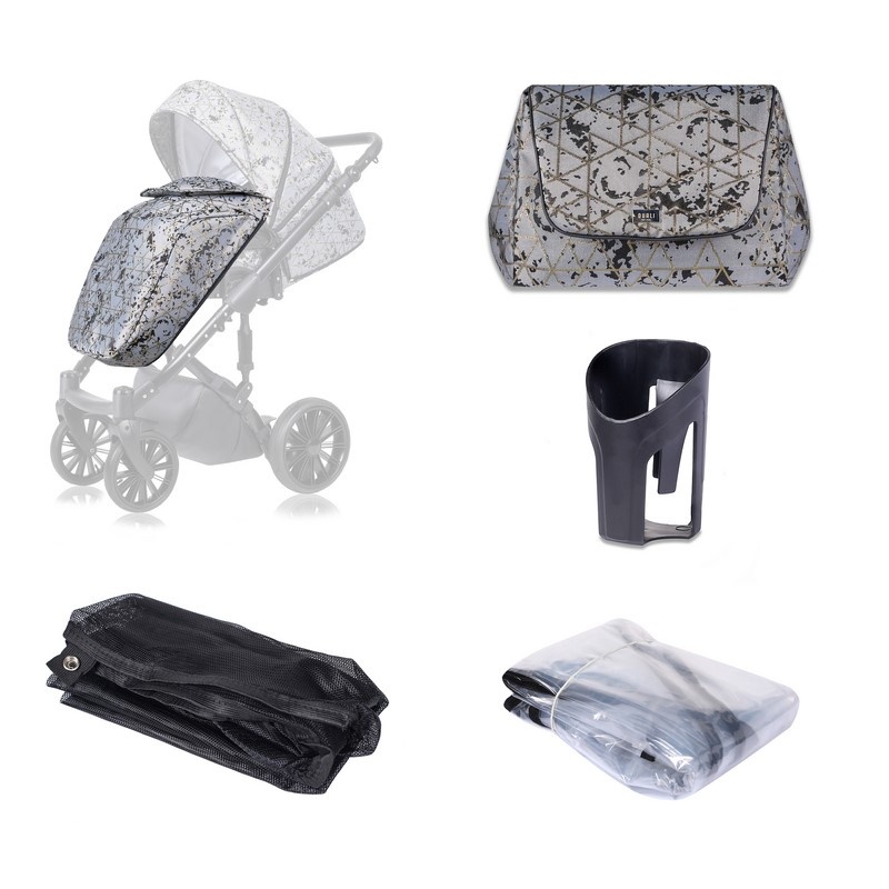 În interior, leagănul este căptușit cu bumbac și echipat cu o saltea din nucă de cocos. Posibilitatea de instalare a unui leagăn în direcția căruciorului și împotriva mișcării. Unitatea de scaun este realizată din aceleași țesături ca și leagănul - un finisaj modern facilitează întreținerea căruciorului.