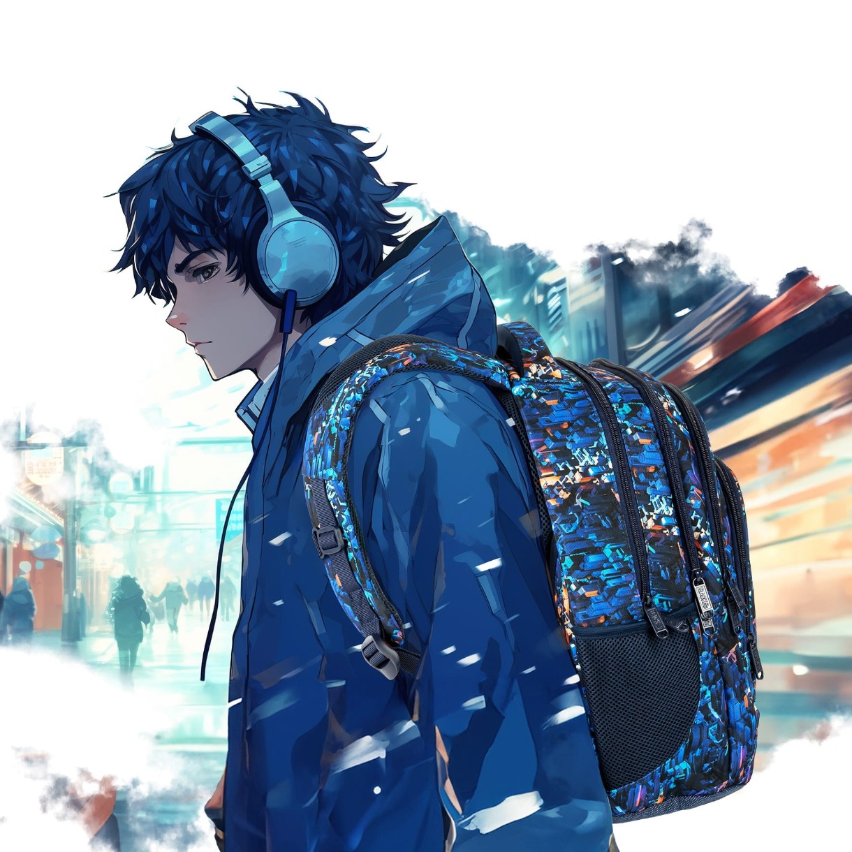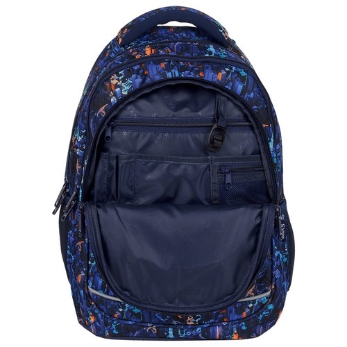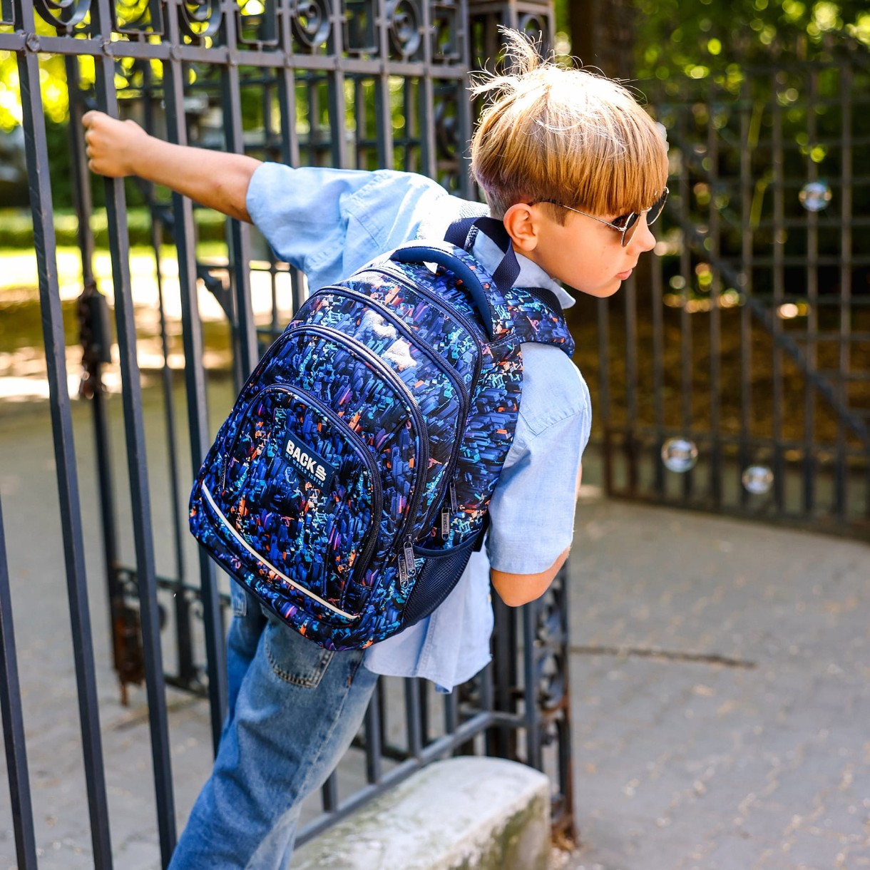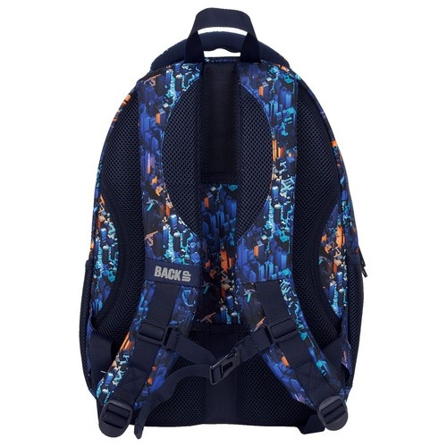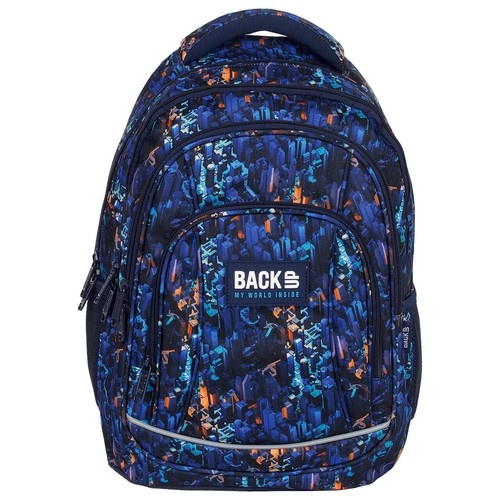 Toată lumea va plăcea acest rucsac de școală spațios și funcțional. Rucsacul se caracterizează printr-o manoperă atentă și un model interesant cu motiv de oraș. Materialul din care este confectionat rucsacul este impermeabil si durabil. Rucsacul este incapator si are 4 compartimente mari. Într-unul dintre compartimente se află o filă mare pentru un laptop și o tabletă; cel de-al doilea compartiment spațios găzduiește ușor și formatul A4 și are un buzunar mic cu fermoar; al treilea are un organizator la îndemână cu carabină. Pe laterale, rucsacul are două buzunare deschise din plasă pentru o sticlă de apă sau o sticlă de apă. Toate fermoarele se termină cu tragători mari și la îndemână. Spatele rucsacului este bine rigidizat și acoperit cu material respirabil. Bretelele de umăr sunt largi, căptușite moale, acoperite cu material respirabil pe partea inferioară. Are, de asemenea, o curea pentru piept care îmbunătățește confortul transportului de sarcini mai grele. Partea inferioară a rucsacului este întărită cu spumă. În partea de sus a rucsacului există un mâner de transport căptușit ușor și un mâner suplimentar pentru agățat. Are reflectoare discrete care vor asigura siguranta pe drum. Buzunarul din față întărit cu spumă protejează conținutul de deteriorare.
