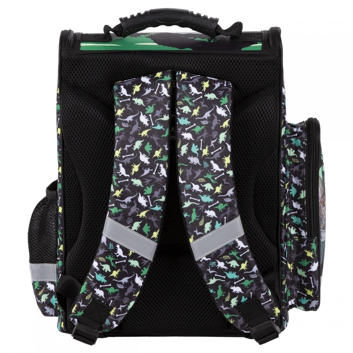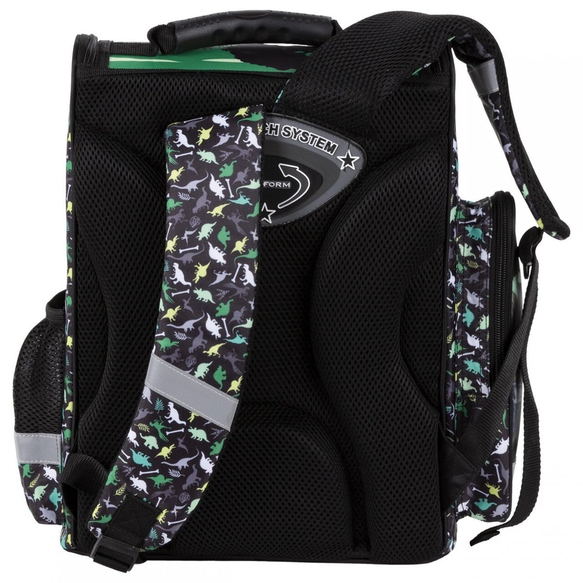 Bretele de umăr căptușite, reglabile, acoperite cu material respirabil. Greutatea manualelor și a caietelor este distribuită uniform. Mâner de transport întărit. Numeroase reflectoare vor asigura siguranta pe drum. Material rezistent la apa, foarte durabil. Geanta de școală este echipată cu Sistemul de Genți Ergonomice.