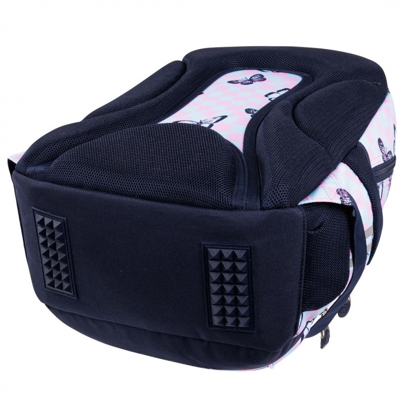 Ghiozdanul are 1 compartiment principal si 2 compartimente frontale cu fermoar.