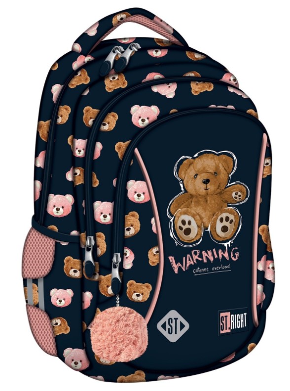 Ghiozdanul are 1 compartiment principal si 2 compartimente frontale cu fermoar.