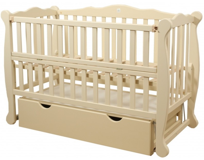 Mecanismul de legănare a patului este - pendul transversal. Prin urmare, cu ajutorul rulmenților metalici, părinții își pot adormi copilul în tăcere. Dacă este necesar, rulmenții pot fi fixați cu ușurință, iar patul va fi într-o poziție statică. Deasemenea patul este completat cu sertar închis pentru depozitarea lucrurilor. Este posibilă setarea înălțimii saltelei la două niveluri, în funcție de înălțimea și vârsta copilului.
