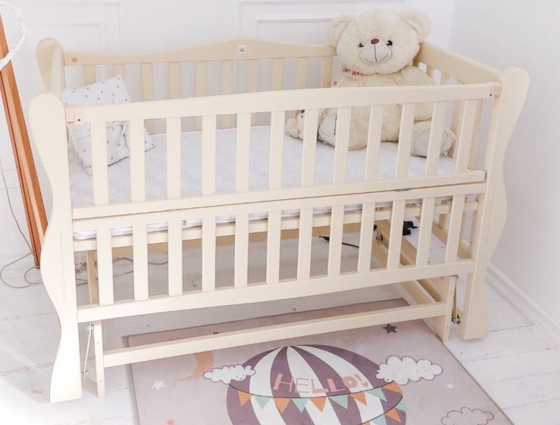 Mecanismul de legănare a patului este - pendul transversal. Prin urmare, cu ajutorul rulmenților metalici, părinții își pot adormi copilul în tăcere. Dacă este necesar, rulmenții pot fi fixați cu ușurință, iar patul va fi într-o poziție statică. Este posibilă setarea înălțimii saltelei la două niveluri, în funcție de înălțimea și vârsta copilului.