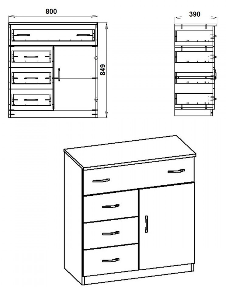 Comodă Компанит 1-3-1 Nimfeia Alb