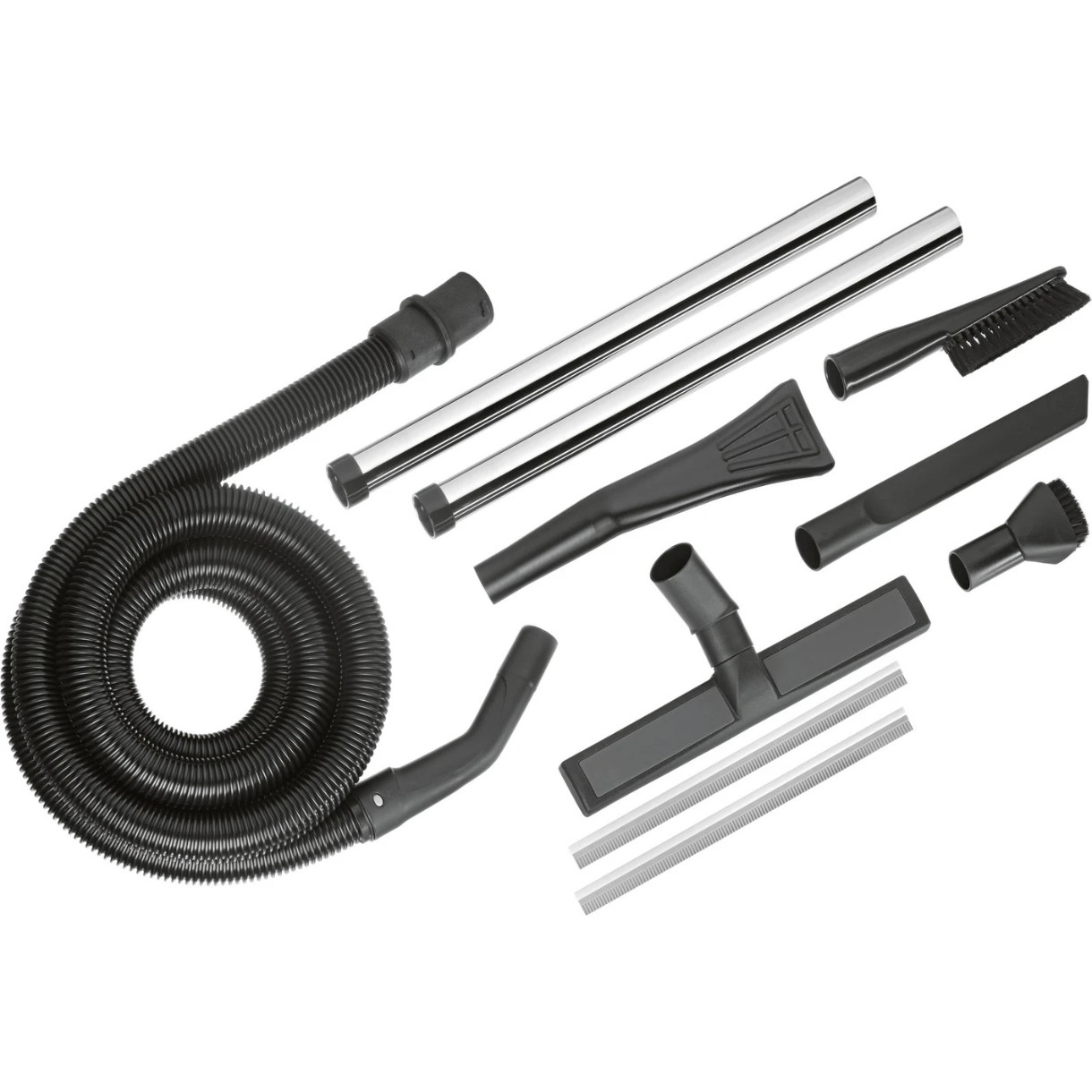 SetFurtun de aspirare de 4 m, Cot din plastic, Tuburi prelungitoare metalice, 2 x 0,5 m, Duză pentru spații înguste, Duză pentru podele, Duză auto, Perie universală, Atașament perie, Cuplaj de reducție