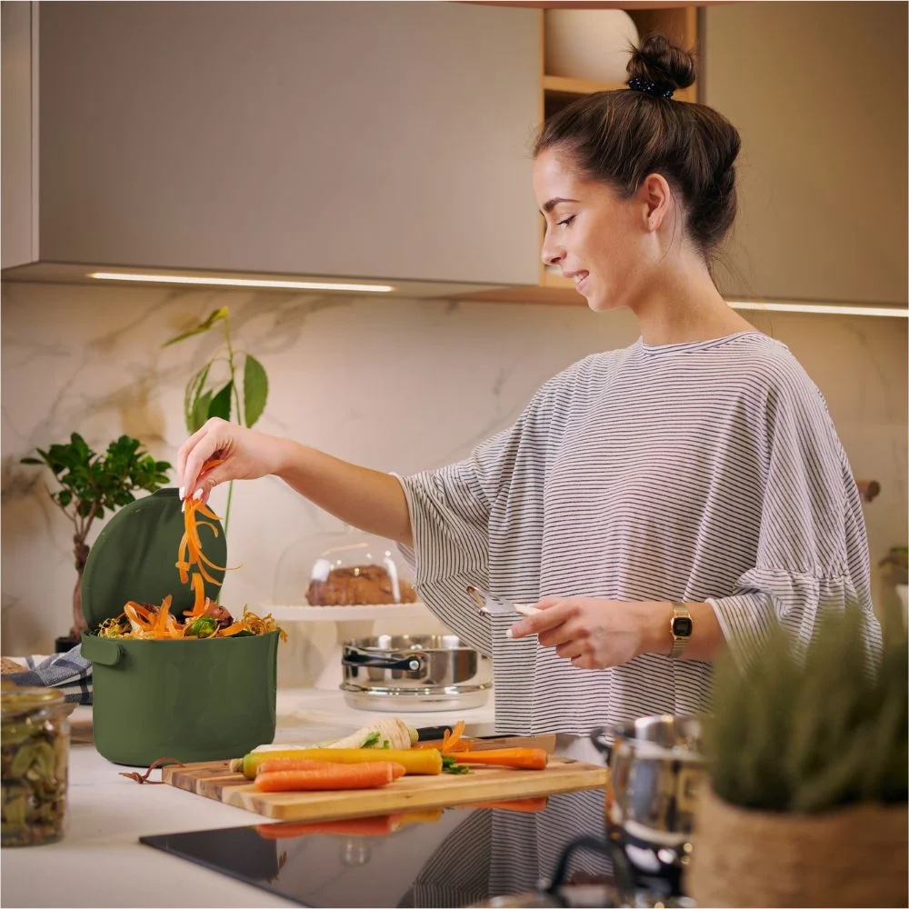 Composterul Skaza este o soluție practică și modernă pentru transformarea deșeurilor organice menajere acasă. Permite reciclarea resturilor alimentare — legume, fructe, coji, zaț de cafea și alte deșeuri biologice — într-o bază valoroasă pentru compost sau îngrășământ organic, prin metoda de fermentare Bokashi. Acest mod de compostare reduce volumul de deșeuri, elimină mirosurile neplăcute și este ecologic și sigur pentru bucătărie sau apartament. Compostorul este etanș, astfel nu apar muște sau descompunere. Cu ajutorul bazei și robinetului de scurgere poți separa ușor lichidul-fertilizator și scurge separat. Este o soluție excelentă atât pentru apartamente urbane, cât și pentru case de țară — ideal dacă dorești să reduci volumul de gunoi și să obții materie organica utilă pentru plante.