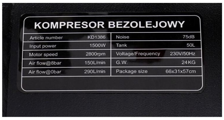 Specificații Compresor Kraft&Dele KD1386